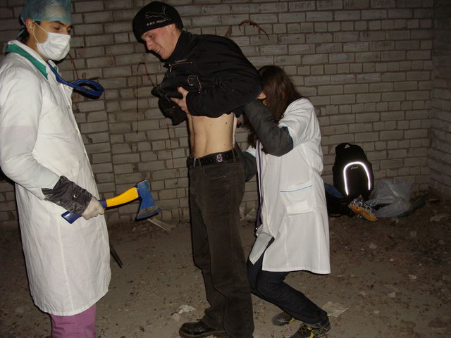 Рыбачок рассказывал, что когда из за угла появился врач с топором и пилой в руках, он чуть с 3 этажа не упал