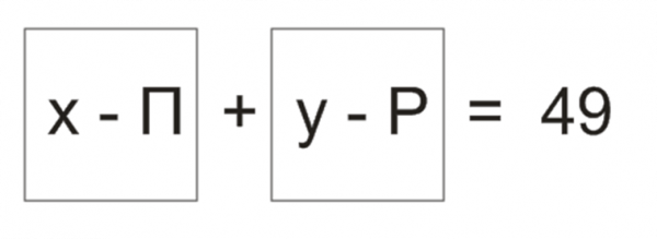 Логика: Уравнение окружности с центром в точке (П, Р). Все должно быть в квадрате. Поэтому из 49 извлекаем корень. Получается 7 Окружной ПРоезд, 7