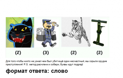 В новостях гремело сообщение о дерзком убийстве! Корреспондент немного заикалась, но в целом говорила быстро и много. В ценТре в районе Темзы была найдена записка, осТавленная пресТупником, по коТорой удалось поняТь чТо же использовал жесТокий гений в качесТве оружия: шщъыабвгрстуфхцч (формат ответа - орудие убийства, одно слово, на русском) Т9 ШАРФ