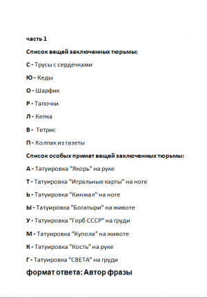 Из первых букв узнаем что агентам нужно привезти 100 граммов шоколада. После этого получались основные задания.