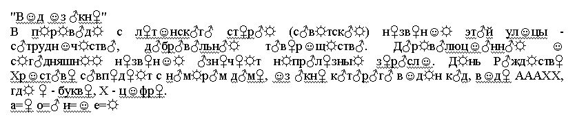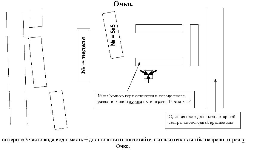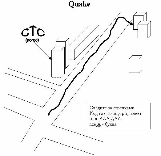 6. фигурах и находятся внутри здания. Кодом будет слово, составленное из этих букв. 3. специального заведения. На этой же улице найдите дом, номер которого равен 7. Следите за углами. 5. противоположной стороне улицы. 6 частей кода (буквы) написаны в геометрических 2. тем легче будет тем, кто в нем находится. Происходит это магическое действие возле 4. порядковому номеру Кадмия в таблице хим. эл-тов Д.И. Менделеева. Ваша цель на 1. Среди молодых людей существует такой обычай и поверье: чем сильнее качать автобус,